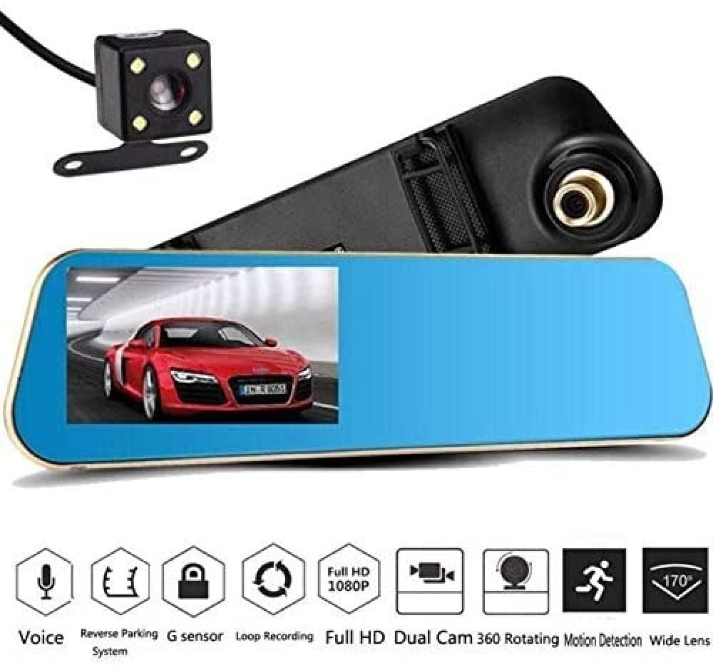 مرايا داش كام بعدسة مزدوجة لرؤية الخلفية ومسجل فيديو 4.3 انش